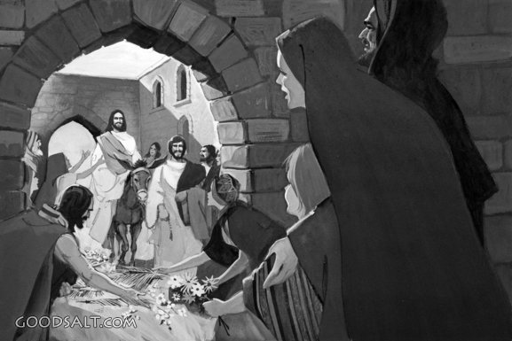 city, enter, jerusalem, crowd, palm, welcome, donkey, branches, idlas0299