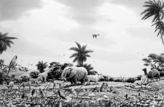 creation, drawing, lion, elephant, camel, giraffe, animals, vintage