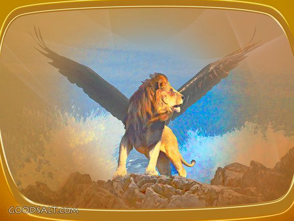 Daniel's Vision Daniel 7:4 wave, strong, ocean, sea, vision, lion, eagle, swift, daniel, babylon, babylonian, waves, wings, visions, babylonian empire, eagle wings, winged lion PROJECTION - License for PowerPoint™ PRINT – buy a print of this picture; optional frame Bible Hub |