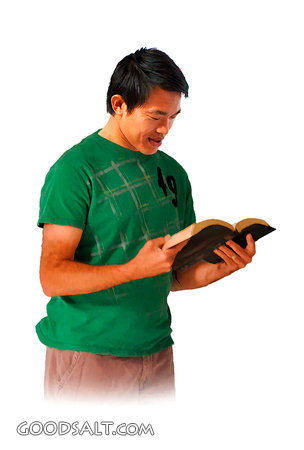 green, read, bible, man, asian, shirt, Scriptures, steve, creitz, white background