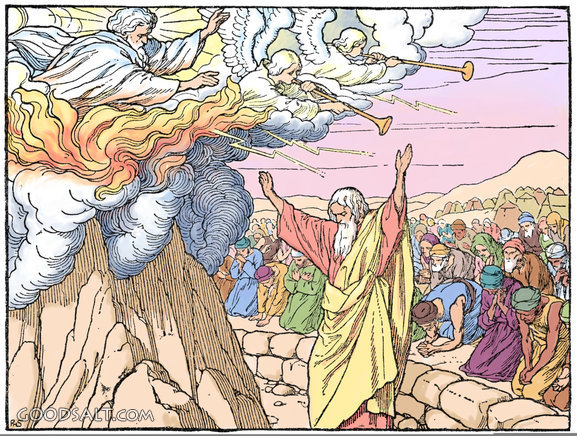father, god, voice, law, worship, moses, covenant, commandments, trumpets, god's voice, first covenant