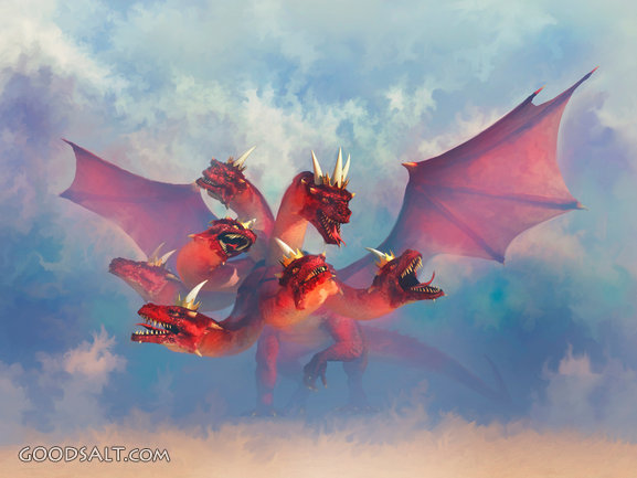vision, dragon, prophecy, seven, beast, red, heads, 10 horns, ten horns