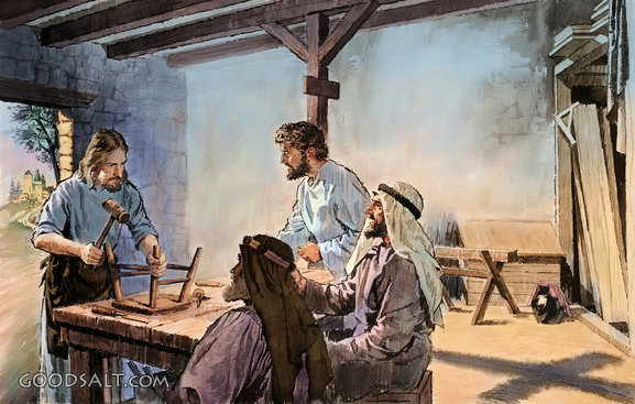 Jesus, color, shadow, cross, carpenter, friends, customers, shopwork
