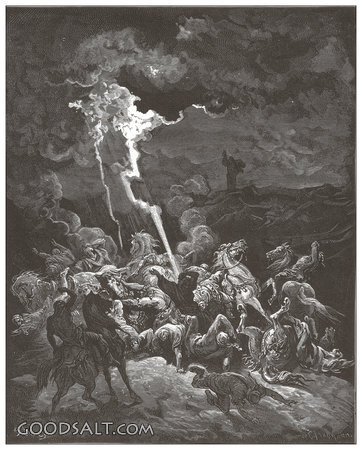 destroy, elijah, fire, soldiers, Gustave Dore