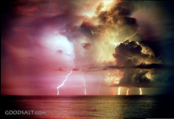 colorful, dramatic, ocean, sea, storm, lightning, clouds