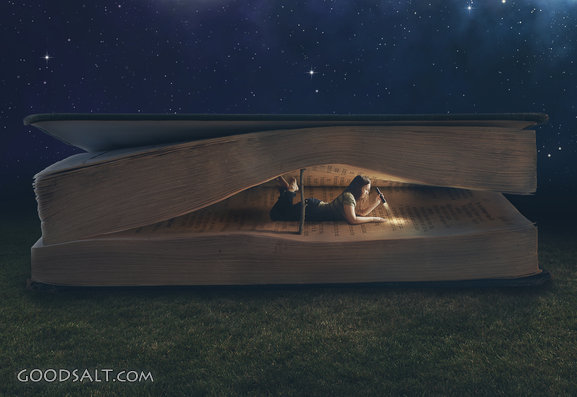 surreal, read, bible, large, girl, woman, night, scripture, text