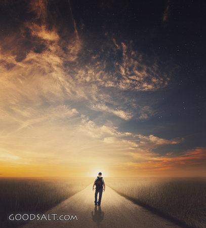 follow, walk, travel, dusk, man, pathway, sunset, road