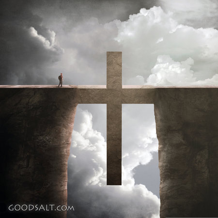 walk, chasm, man, heaven, cross, hell, sin