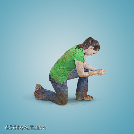 mess, mud, girl, woman, prayer, worship, dirt, bow