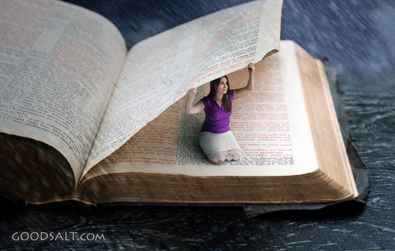 abstract, surreal, shelter, page, bible, woman, storm, cover