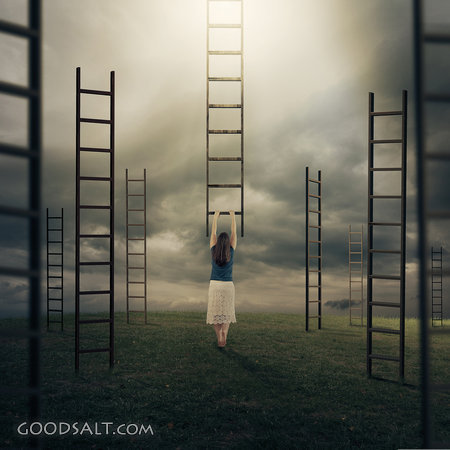 abstract, surreal, climb, woman, earth, heaven, ladder, works