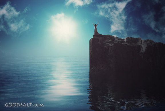 water, mountain, cliff, ocean, girl, woman, night, praise