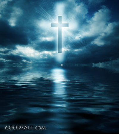 water, bright, dark, Jesus, ocean, blue, light, cross