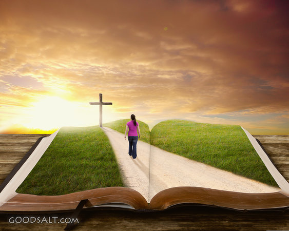 surreal, walk, bible, grass, girl, woman, pathway, field