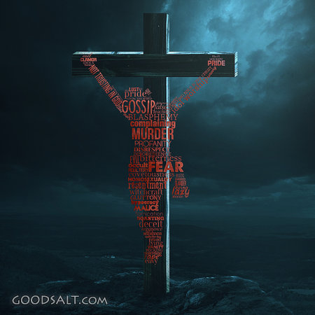 Sins on the Cross Luke 19:10 Romans 5:8 2 Corinthians 5:21 surreal, die, pain, christ, Jesus, blood, blue, death, cross, night, religion, sin, christian, concept, red, word, easter, art, text PROJECTION - License for PowerPoint™ PRINT – buy a print of this picture; optional frame Bible Hub |
