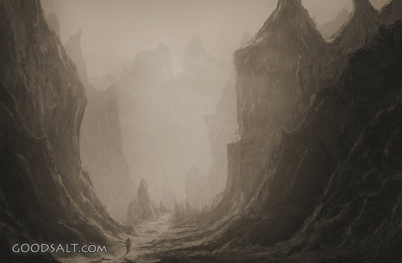 Valley of Death Psalm 23:4 walk, travel, landscape, dark, nature, hike, ominous, mountain, rock, cliff, scary, man, afraid, alone, storm, death, valley, sepia PROJECTION - License for PowerPoint™ PRINT – buy a print of this picture; optional frame Bible Hub |