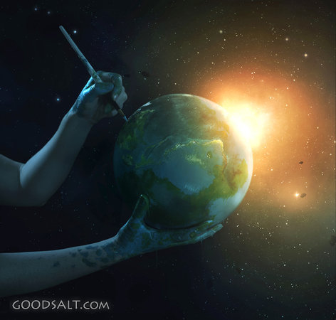Painting the Planet John 21:25 surreal, sun, wet, sky, create, god, ocean, earth, space, universe, solar, system, planet, night, paint, brush, art, hands, arms, stars, artist PROJECTION - License for PowerPoint™ PRINT – buy a print of this picture; optional frame Bible Hub |