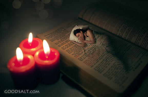 Resting in the Bible Psalm 4:8 surreal, candle, rest, dark, page, bible, book, macro, peace, girl, woman, holy, light, religion, concept, blanket, warm, comfort, relaxing, sleep, scripture, word PROJECTION - License for PowerPoint™ PRINT – buy a print of this picture; optional frame Bible Hub |