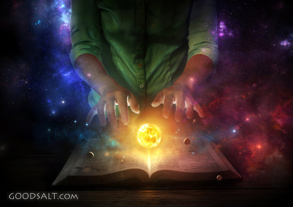 Bible and the Universe John 1:1-6 shine, sun, sky, bright, creation, god, colorful, bible, book, power, space, universe, galaxy, nebula, planet, night, star, christian, scripture, hands, comet PROJECTION - License for PowerPoint™ PRINT – buy a print of this picture; optional frame Bible Hub |