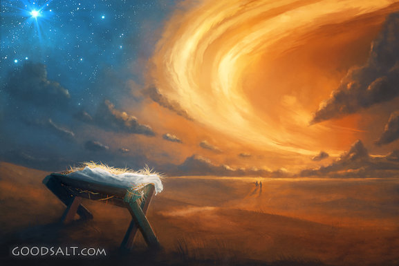 Manger Scene With Mary and Joseph Luke 2:1-19 sky, colorful, Jesus, drawing, painting, illustration, joseph, mary, manger, night, beautiful, religion, evening, bethlehem, christmas, angels, stars PROJECTION - License for PowerPoint™ PRINT – buy a print of this picture; optional frame Bible Hub |