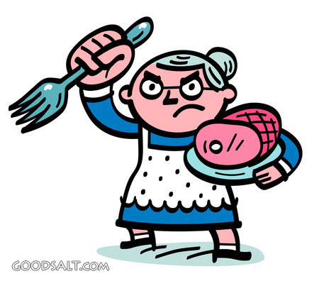 self, fork, anger, food, cook, grandma, grandmother, angry, ham, barrie