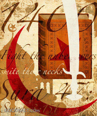 Quran Tapestry With Passages From Sura 1 John 2:22 sword, koran, world magazine, quran, tapestry, sura 3, sura 3:151, holy writings, holy manuscript, inclusiveness PROJECTION - License for PowerPoint™ PRINT – buy a print of this picture; optional frame Bible Hub |