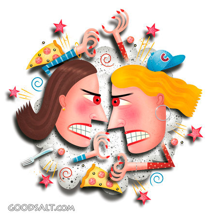fight, pizza, women, anger, mean, angry, wrestle, disagree