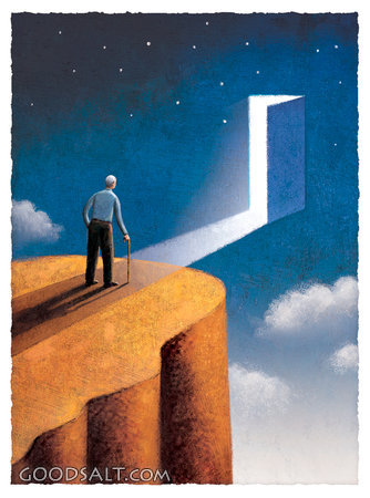 salvation, sky, hope, cliff, elderly, old, heaven, door, light, death, stars, open door