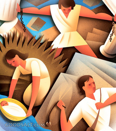 slingshot, baby, temple, river, basket, cartoon, david, moses, nile, samson, pillars, heroes, cut-out