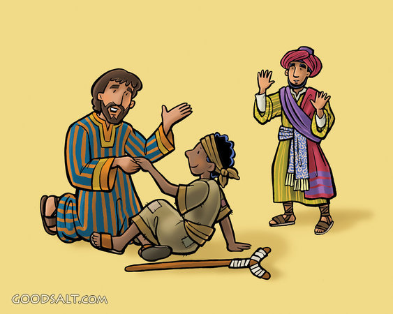 Simon Sees the Power 2 Corinthians 5:7 Acts 8:17-18 heal, healing, power, apostle, john, simon, kim justinen, childrens art, childrens style art, simon the sorcerer, crippled boy, ksjas0072 PROJECTION - License for PowerPoint™ PRINT – buy a print of this picture; optional frame Bible Hub |