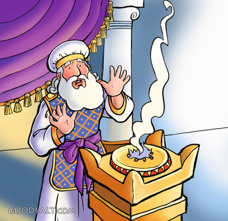 Zacharias Sees an Angel Psalm 51:16 Luke 1:5-20 Luke 1:11 Psalm 141:2 Isaiah 56:7 Leviticus 4:7 Leviticus 16:18 ceremony, morning, elementary, promise, intercession, temple, surprised, evening, gabriel, tabernacle, amazed, zechariah, zacharias, high priest, holy place, altar of incense, Kindergarten, Primary, zacharias and angel, kim justinen, grade one, black line, black lines, sunday school, sabbath school, ink line style, ink line, cradle roll, ink brush style, kids art, kids division, art for kids, art for children, art for childrens class, art for childrens division, bible class, grade two, grade three, grade four, ink brush, kids bible class, kids class, kids classes, art for children's class, child art, inkline, sees angel, visited by angel, visited by an angel, promise of a son, zacharias sees an angel, angel appears, angel appears to, gabriel visitation, gabriel visits, ksjas0134, 0134, golden altar of incense, daily ritual, holy incense, symbol of prayer, house of prayer, angel visitation, children's illustration style, insence PROJECTION - License for PowerPoint™ PRINT – buy a print of this picture; optional frame Bible Hub |
