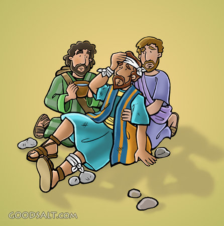Paul - Stoning Acts 9:8 help, helping, persecution, injured, ministering, stoning, stone, men, apostle, paul, missionary, sympathy, division, children's PROJECTION - License for PowerPoint™ PRINT – buy a print of this picture; optional frame Bible Hub |