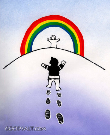 Promise of a Savior Genesis 9:13 salvation, god, christ, Jesus, print, hill, rainbow, snow, foot, savior, eskimo, open, up, love, walking, footprints, prints, to, arms, in, tracks, steps, inuit, scratchboard, steps to christ PROJECTION - License for PowerPoint™ PRINT – buy a print of this picture; optional frame Bible Hub |