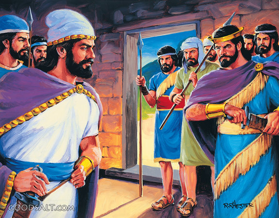 Rival Kings 1 Kings 12:1-19 fight, behind, collection, each, men, face, angry, argue, argument, on, hands, kings, spears, Rehoboam, Jeroboam, swords, Looks, are, their, them, other, lifeway, ron hester, lfwas0187 PROJECTION - License for PowerPoint™ PRINT – buy a print of this picture; optional frame Bible Hub |