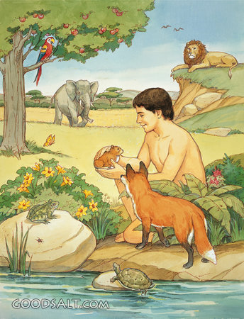 Adam Enjoying God's Creation Genesis 2 Genesis 3 creation, god, bird, frog, fox, collection, squirrel, turtle, lion, adam, garden, enjoying, elephant, eden, god's, lifeway, pat karch PROJECTION - License for PowerPoint™ PRINT – buy a print of this picture; optional frame Bible Hub |