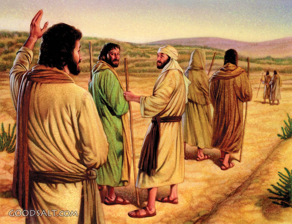 Jesus Calls James and John Mark 6:7-11 follow, two, calling, Jesus, no, waving, collection, sent, john, food, clothing, james, carry, walking, is, disciples, followers, apostles, helpers, Calls, chose, by, staffs, lifeway, douglas klauba, good-bye, or PROJECTION - License for PowerPoint™ PRINT – buy a print of this picture; optional frame Bible Hub |