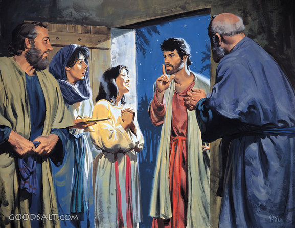 Believers Receive an Answer to Prayer Acts 12:13-17 miracle, collection, prayer, peter, jail, prison, receive, released, answer, Believers, lifeway, p. mann PROJECTION - License for PowerPoint™ PRINT – buy a print of this picture; optional frame Bible Hub |
