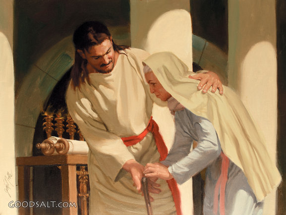 cure, Jesus, heal, back, collection, woman, healed, hurting, Crooked, lifeway, jim noble, doubled over