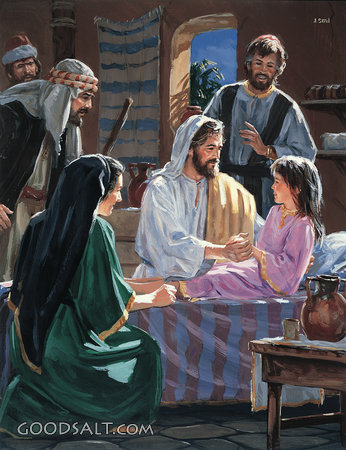 Jairus' Daughter Lives Mark 5:41-43 Luke 8:54-56 raise, Jesus, collection, resurrect, jairus, daughter, resurrection, lives, Talitha, john steel, lifeway, lfwas1031 PROJECTION - License for PowerPoint™ PRINT – buy a print of this picture; optional frame Bible Hub |