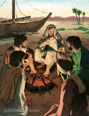 Breakfast with Jesus John 21:1-14 Jesus, miracle, breakfast, collection, sea, peter, boat, fire, fish, fishermen, disciples, lifeway, gregg thorkelson, lfwas1090, reinstate PROJECTION - License for PowerPoint™ PRINT – buy a print of this picture; optional frame Bible Hub |