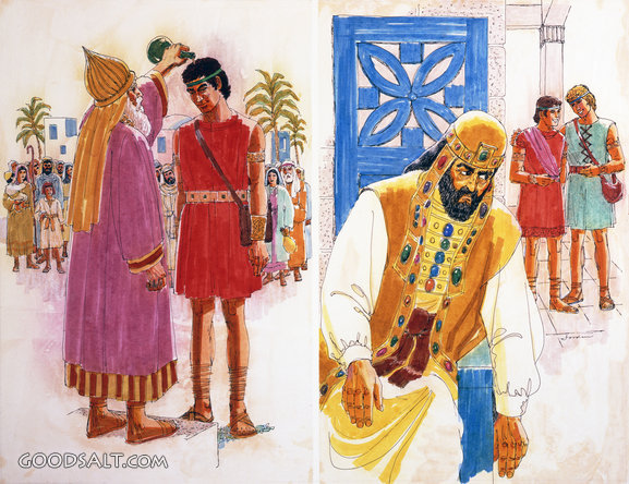 Israel's First King 1 Samuel 10:1 1 Samuel 10:27 first, collection, samuel, saul, king, jealous, anointed, anointing, david, jonathan, lifeway, lfwas1308 PROJECTION - License for PowerPoint™ PRINT – buy a print of this picture; optional frame Bible Hub |