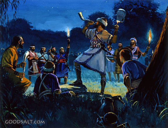 Gideon Gives Instructions Judges 7 fight, collection, battle, 300, plan, gideon, soldiers, jars, torches, horns, Gives, instructions, jugs, lifeway, lfwas1336 PROJECTION - License for PowerPoint™ PRINT – buy a print of this picture; optional frame Bible Hub |