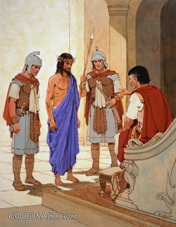 Jesus Stands Before Pilate John 18:33 Luke 23:3 Mark 15:2 Matthew 27:11 Jesus, collection, robe, crown, trial, jerusalem, governor, roman, pilate, guard, judge, thorns, Stands, lifeway, lfwas1494 PROJECTION - License for PowerPoint™ PRINT – buy a print of this picture; optional frame Bible Hub |