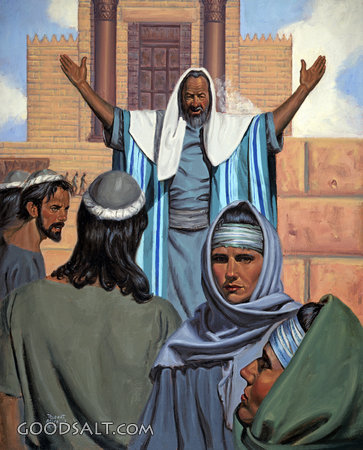 Jeremiah Preaches at the Temple Jeremiah 7:3-4 collection, warning, temple, jerusalem, jeremiah, prophecy, doom, preaches, prophecies, lifeway, lfwas1648 PROJECTION - License for PowerPoint™ PRINT – buy a print of this picture; optional frame Bible Hub |