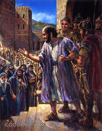Courageous Paul Proclaims the Gospel Acts 21:26-39 collection, jerusalem, crowd, defense, paul, gospel, mob, defending, romans, soldiers, stairs, courageous, lifeway, codelj oct_16, lfwas1674 PROJECTION - License for PowerPoint™ PRINT – buy a print of this picture; optional frame Bible Hub |