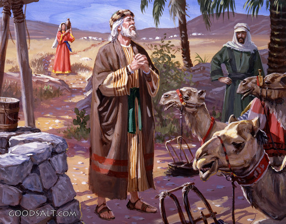 Abraham's Servant at the Well Genesis 24:34-42 water, collection, sign, well, jacob, rebecca, servant, camels, Eleazar, john steel, abraham's, lifeway, lfwas1806 PROJECTION - License for PowerPoint™ PRINT – buy a print of this picture; optional frame Bible Hub |