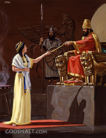 Esther Approaches the King Esther 5:1-3 invite, invitation, collection, king, queen, ahasuerus, esther, xerxes, john steel, Approaches, lifeway, lfwas1836 PROJECTION - License for PowerPoint™ PRINT – buy a print of this picture; optional frame Bible Hub |