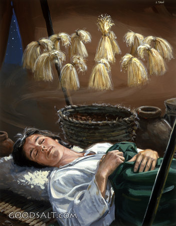 Joseph's Dream Genesis 37:5-7 bowing, prophetic, corn, collection, grain, wheat, dream, prophecy, sleep, john steel, joseph's, lifeway, sheves, lfwas1837 PROJECTION - License for PowerPoint™ PRINT – buy a print of this picture; optional frame Bible Hub |