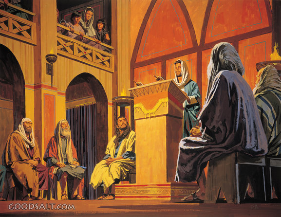 Jesus in the Nazareth Synagogue Luke 4:16 messiah, Jesus, read, nazareth, collection, scroll, isaiah, prophecy, prophet, synagogue, lifeway, p. mann, lfwas1965 PROJECTION - License for PowerPoint™ PRINT – buy a print of this picture; optional frame Bible Hub |