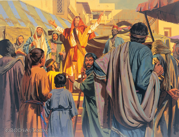 speak, talk, preach, collection, peter, jerusalem, crowd, pentecost, lifeway, p. mann, lfwas1971